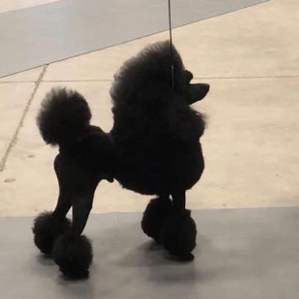 Matty is proof that Miniature Poodles can do it all. When the Mad Dog finished his championship it was his 105th title! He is out of our GCh Ch Harmony Clarion Stairway To Heaven RA. This 15 inch boy is a beautiful blue with a great body, pretty face and wonderful carriage. Matty is currently living in Tennessee with his owner Jaime Hollingsworth. We are happy to forward inquiries on to his owners.