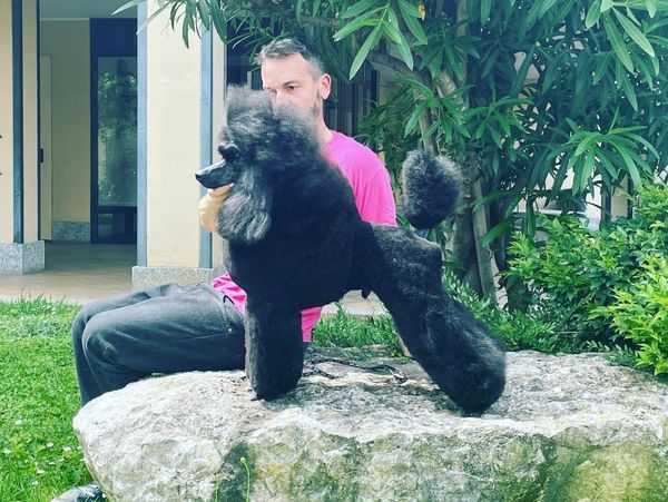 Even as a four week old puppy Richard was eye catching. His big thick black coat covers one of the best bodies I've ever put my hands on. I love to watch him float around the ring with his long neck, perfect carriage on tight thick feet. Finally its the temperament - confident, loving, joyful - well happiness . . . amplified.